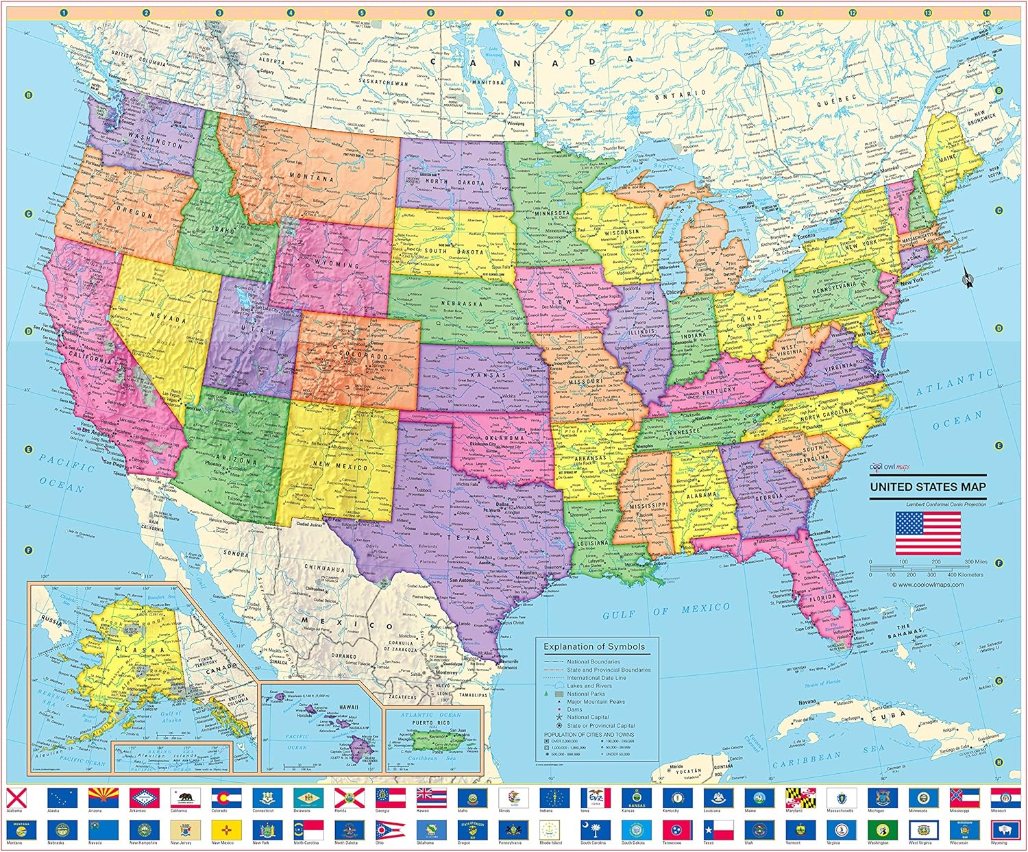 Decorate your wall and learn U.S. geography with this Kappa USA map poster! It’s a large 40 by 28 inches, featuring all 50 states clearly labeled with capitals, major cities, time zones, national parks, landmarks, and more. The colorful, detailed design makes it both educational and eye-catching.